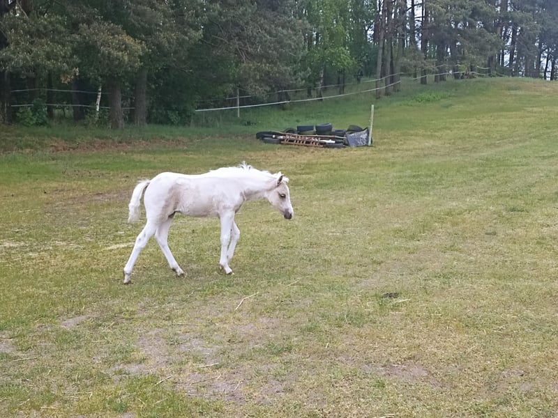 Belle Voix du Coeur, ein zukünftiges Sportpony. Wie ihr ursprüngliches Palomino-Pie-Fell (bestätigt durch homozygote genetische Tests am Locus E – Genotyp T/T(e/e), heterozygot am Locus C – Genotyp A/G( Cr/N)). Sie besitzt ein starkes Temperament und eine ausgeprägte Sensibilität im Kontakt mit Menschen. Seit ihrer Geburt wird sie frei aufgezogen, was zukünftig eine gute Muskulatur garantiert – ideal für den Sport. Die Stute ist geimpft, regelmäßig entwurmt nach Plan und wird kontinuierlich vom Hufschmied betreut. Das AES-Pass ist in Erstellung. Geschätzte Größe 130–135 cm. Geboren am 25.03.2025. Vater: Ares Welsh Pony (Wolling’s Dante Welsh – Apasjonata Dumka Welsh / Kienbergs Doro Welsh) Mutter: Norwegian Wood (Nando Super – Bisia) Ihre Mutter hat sich im Springsport bewährt, mit einer Größe von 130 cm und dokumentierten Turniererfolgen bis 100 cm. Das erforderliche TRACE-Dokument für den internationalen Transport stelle ich bereit. Telefon/WhatsApp +33 660836193, FR, EN, PL Telefon/WhatsApp +48 883992001, FR, EN, PL Preis: 3.000 €