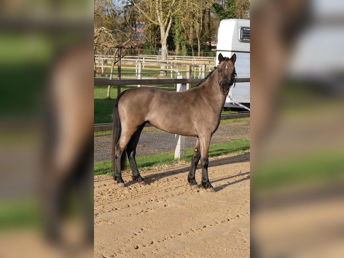 Doutzen, bei uns auf dem Hof genannt Doortje, ist eine hübsche schwarze Stute. Im Umgang ist sie äußerst brav. Das Füße geben, das Stehenbleiben, das ordentliche Mitlaufen an der Leine, das Putzen und Scheren sind kein Problem. Sie ist ein Pony, das das Arbeiten liebt. Sie zeigt gerne eine Show und ist stets motiviert. Mittlerweile kennt sie Longieren an der Longe sowie an den Doppel-Longen. Auch hat sie schon einen Singel-Reithalstrense und das Reithalfter getragen – alles kein Problem. Wöchentlich geht sie als Handpferd mit auf Ausritte. Entlang der Straße und durch den Wald. Dabei ist sie immer super brav und arbeitswillig. Sie lässt sich nicht leicht von Verkehr oder anderen Dingen, die man bei einem Ausritt begegnen kann, beeindrucken. Ich denke, dass Doortje am besten als Kinderpony oder als Reitpony geeignet ist. Sie liebt das Arbeiten sehr und verfügt über drei gute Gänge. In nächster Zeit werden wir sie weiterhin ruhig anreiten, und der Preis wird mit fortschreitendem Training steigen. Das einzige kleine Manko an Doortje ist, dass sie bei einer zuckerreichen Ernährung Juckreiz bekommt. Sie erhält nur Heu, etwas Kraftfutter ohne Getreide oder Luzerne. So hat sie keine Probleme mit Juckreiz.