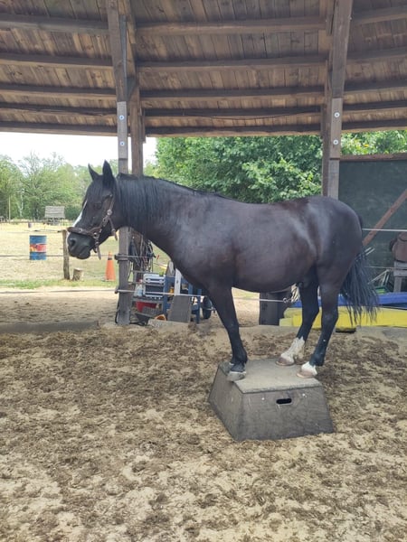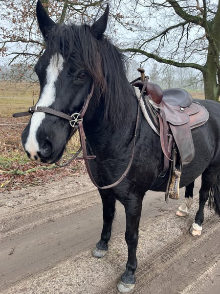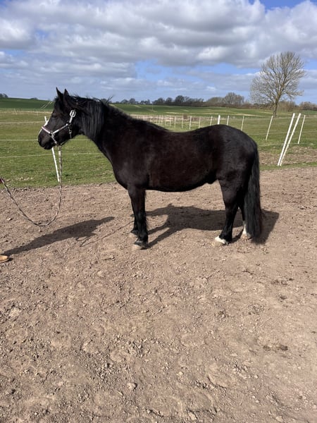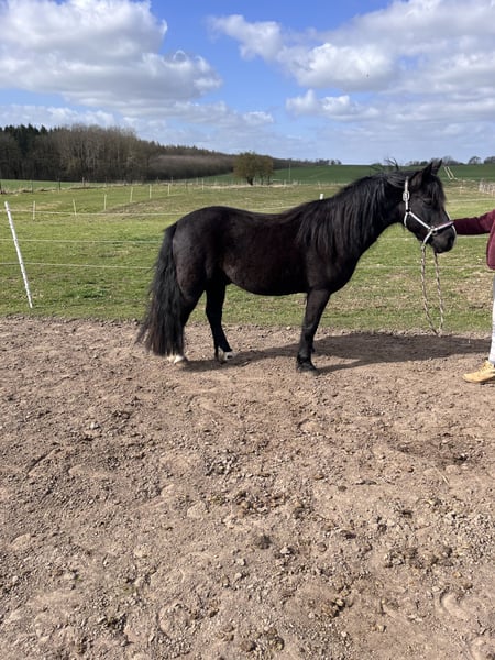 Kalle (bred name Ramonshof Calypso) is a 16-year-old Welsh B gelding standing at 138 cm, who has been my companion for the past 13 years. --- Training --- Kalle has a solid groundwork foundation, including lunging and riding. Emphasis has always been placed on gymnastic movement. He is very well-behaved both in the arena and when hacking out, generally showing a calm and balanced demeanor during work. As a young horse, I clicker-trained him throughout his basic education, which fostered his enjoyment of work and his fondness for human interaction. Although treats can boost his motivation, less work with food rewards was done on the lunge and under saddle over time. He also knows a few fun tricks, which makes working with him especially enjoyable—sometimes he responds with a gentle grumble. He has mainly been worked bitless but is familiar with a bit and accepts it. Farrier visits (barefoot), trailer loading, and vet appointments are no problem for him. --- Character --- Kalle is characterized by his exceptional personality. He is very eager to learn, intelligent, and has a witty nature, making working with him a true pleasure. He quickly endears himself to people. He is patient and gentle with children. He shows no bad habits such as kicking, biting, or bucking, and is generally calm and not spooky. He has a slight fear of tractors, trucks, and fly spray, but he does not try to bolt and has always been manageable. --- Keeping --- Kalle has experienced various types of housing: stabled, paddock-pony, in an open stable, and in a paddock trail. He is neither dominant nor submissive within a herd. He has been kept in gelding, mare, and mixed herds. He even mounts mares in foal. He has never been covered or similar, though a fly mask often suits him well. --- Health --- Kalle has been generally healthy throughout his life. Over the years, the veterinarian has not been called often; after a change of the farrier, he became lame. X-rays (AKU) were performed, which showed no issues, and the veterinarian described his images as exemplary. The cause was a quick change in hoof care. About a year ago, he injured his knee ligament when mounting a mare. Again, X-rays confirmed that his bones are in excellent condition, and the ligament has healed well. In his previous stable, Kalle was overweight, but thanks to quick action from everyone involved, a laminitis or similar condition was prevented. He has since lost weight and is now grazing on pasture again. Nevertheless, his diet should be monitored to prevent excessive weight gain. --- Equipment --- Kalle is offered with complete, though somewhat aged, equipment. This includes an Hidalgo Valencia saddle and a Western saddle (which may now be a bit wide, as Kalle has slimmed down). Also included are a LG bridle and additional gear (grooming supplies, blankets, etc.). --- Wishes --- Thanks to his personality and training level, Kalle is suitable for a variety of new homes. However, I would like to mention a few points: He is not intended as a pure children's or school pony, nor as a competition horse, and he is not suitable for box stalls. I would especially be happy if the new home is interested in clicker training, is open to bitless work, and provides plenty of turnout and a species-appropriate environment. Priority goes to the well-being of the horse, not the price!