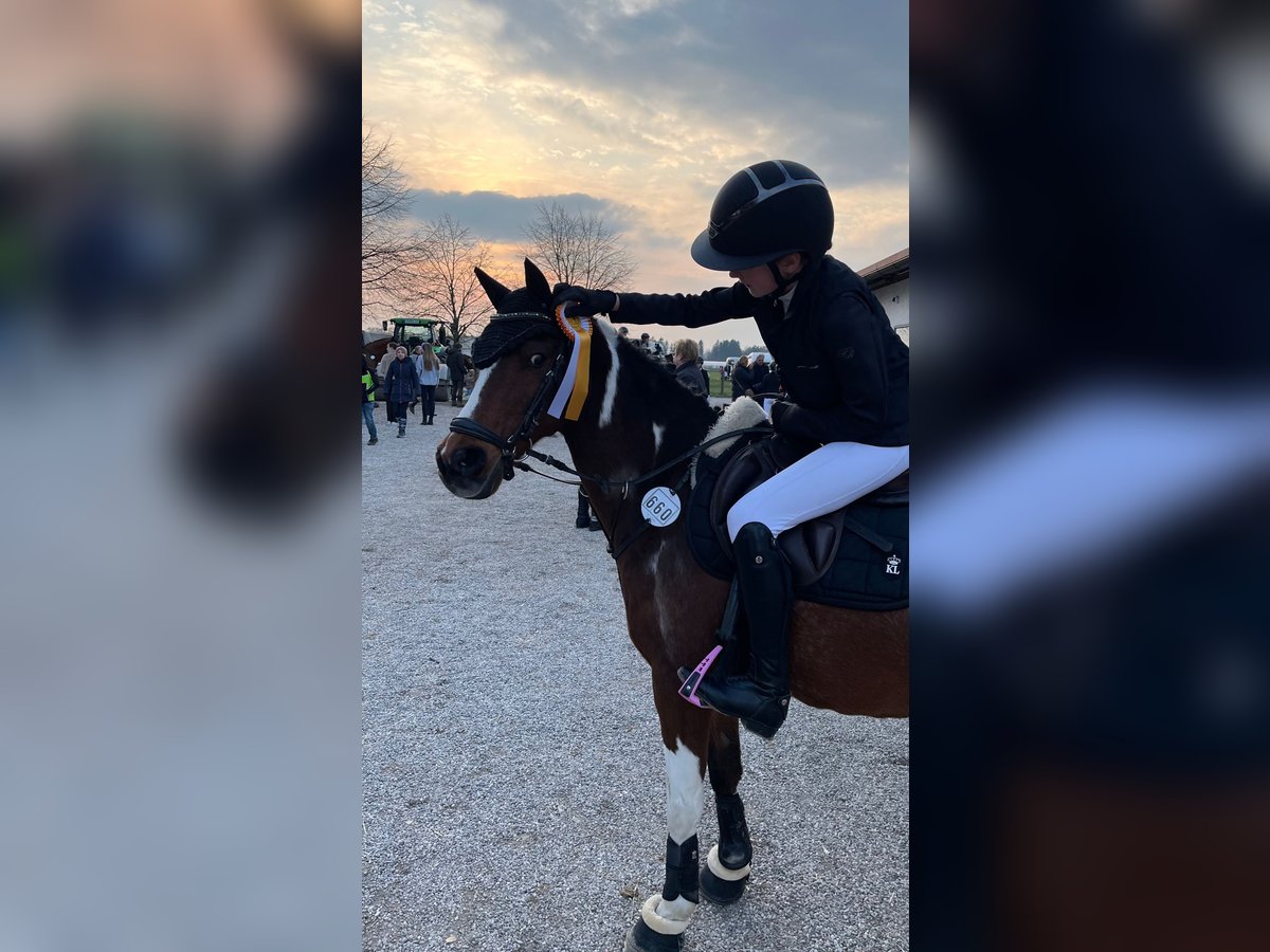 Cookie ist für uns ein absolutes Traumpony. Er hat unsere Tochter vom kleinen Mädchen bis heute treu begleitet und ihr unzählige wunderschöne Momente im Sattel geschenkt. Gemeinsam sind sie gewachsen, haben gelernt, Erfolge gefeiert und ganz viel Freude erlebt. Da unsere Tochter ihm nun leider entwachsen ist, suchen wir schweren Herzens ein neues Zuhause, in dem er weiterhin geliebt, gefördert und wertgeschätzt wird. Cookie ist 20 Jahre alt und 130 cm groß. Im täglichen Umgang ist er ein wahrer Schatz - brav, freundlich und absolut unkompliziert. Putzen, kuscheln, spazieren gehen oder einfach Zeit miteinander verbringen - er genießt die Aufmerksamkeit sehr. Man kann wirklich alles mit ihm machen. Auch beim Ausreiten zeigt er sich super brav und zuverlässig - sowohl allein als auch in der Gruppe mit anderen Pferden. Er geht entspannt mit, ist verlässlich und gibt seinem Reiter ein sicheres Gefühl. Ob als Führpferd, ganz entspannt ohne Sattel, mit Halsring in der Halle oder einfach zum fröhlichen „Hüpfen" über kleine Hindernisse - Cookie macht all das geduldig und motiviert mit. Er ist vielseitig einsetzbar und immer mit Freude dabei. Unter dem Sattel ist er sehr arbeitswillig und freut sich über jede Aufgabe. Er liebt es, regelmäßig bewegt zu werden und zeigt besonders im Springen sein Können. Vor allem in Springreiterwettbewerben blüht er richtig auf. Er ist bis Klasse E im Springen gelaufen und konnte sich außerdem erfolgreich in Klasse E Working Equitation platzieren. Am Sprung bringt er viel Go mit und macht seinem Reiter richtig Spaß. Cookie hat eine empfindliche Lunge und reagiert auf Staub mit Husten. Daher benötigt er einen staubarmen Stall sowie bedampftes Heu. Bei entsprechender Haltung fühlt er sich wohl und ist weiterhin motiviert bei der Arbeit. Wir wünschen uns für ihn ein liebevolles Zuhause, in dem auf seine Bedürfnisse Rücksicht genommen wird und er weiterhin ein treuer Begleiter für ein Kind oder eine kleine Reiterin sein darf. Bei ernsthaftem Interesse freuen wir uns sehr über eine Nachricht. Update: Cookie ist mit seiner Reitbeteiligung in Eicherloh siegreich das 60 cm Springen gegangen. Leider ist die Reitbeteiligung nun ebenfalls dem Pony entwachsen, wie auf dem Foto zu sehen ist,... Cookie wird seinen Prestige Springsattel (wurde für ihn neu gekauft) Happy Pony in braun in das neue zu Hause mitnehmen