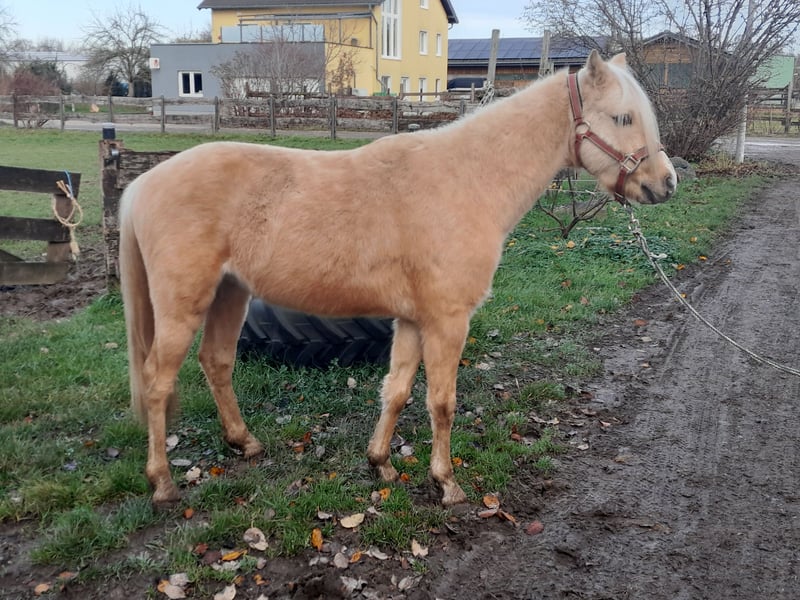 Doris is a 4-year-old Welsh B stallion still in full growth and development. He currently measures 129 cm. He is lightly lunged but is currently turned out in the pasture for 24 hours, enjoying the more or less golden autumn. Before pickup, he can be castrated here if desired. The cost of approximately 500 euros will be covered by the buyer. He does not yet show any stallion behavior and gets along well with other geldings. Doris has a very low rank and needs his own feeding space. Arranging a meet-and-greet is possible by appointment via phone.
