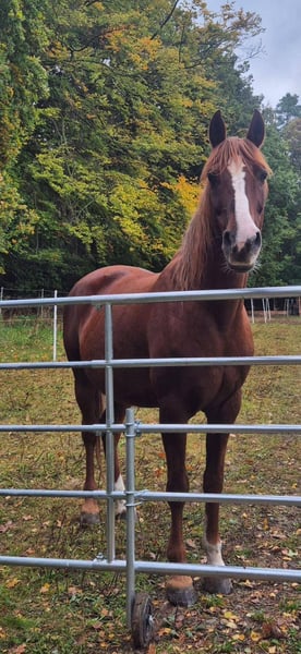 Welsh-Cob-Stute „Debora“ – zuverlässige Freizeitpartnerin für die ganze Familie Rasse: Welsh Cob Alter: 12,5 Jahre Stockmaß: ca. 150 cm AKU: vorhanden 4600,- ✨ Beschreibung: „Debora“ ist eine ausgesprochen brave und liebe Welsh-Cob-Stute, die mit ihrem ehrlichen Charakter überzeugt. Sie ist im Umgang absolut unkompliziert, menschenbezogen und geduldig – ideal auch für Wiedereinsteiger oder Familien. Unter dem Sattel zeigt sie sich zuverlässig und brav. Debora kennt den Reitplatz ebenso wie das Gelände und ist dort souverän unterwegs, ob alleine oder in der Gruppe. Auch kleine Sprünge nimmt sie gerne und gelassen. Ein echtes Allround-Freizeitpferd, das Freude macht! Ideal für Reiter, die: ein verlässliches, braves Freizeitpferd suchen, das sicheren Spaß sowohl im Gelände als auch auf dem Platz bietet. Unsere Pferde werden regelmäßig: – entwurmt – vom Schmied betreut – osteopathisch kontrolliert Hofladen: Westernsättel, Trensen & Zubehör Transport und Equipment nach Wunsch günstig organisierbar Unser Service: ✅ 3 Monate Umtauschrecht ✅ Proberitt: 35 €, jedes weitere Pferd 25 € (beim Kauf am selben Tag verrechnet) ✅ 100 € Sofort-Rabatt bei Abholung/Transport am gleichen Tag ✅ Ehrliche und persönliche Beratung Anfragen bitte ausschließlich telefonisch: 0171 – 4001968 Erreichbar täglich von 8–20 Uhr ⚠️ Keine E-Mail oder WhatsApp ⚠️ Alle Angaben ohne Gewähr
