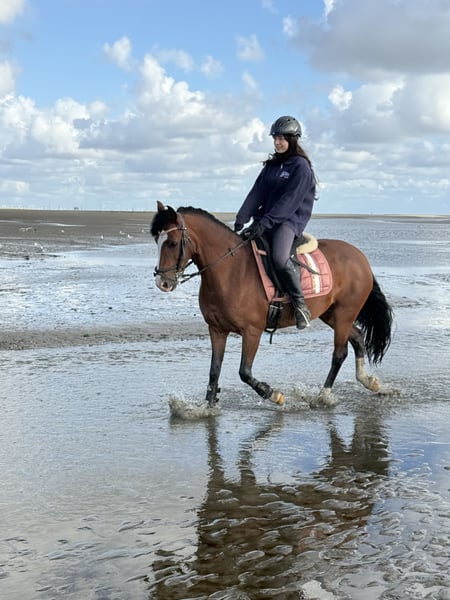 14 Jahre alt, Absolut artig im Gelände und auf dem Platz. Möchte gerne gefördert werden. Sie lebt derzeit in einer gemischten Herde, in einem Offenstall. Barhuf, Komplett geimpft auch Herpes Zähne zuletzt 01/25 gemacht Sunny ist Ekzemer, wir haben es aber inzwischen sehr gut in den Griff bekommen haben. Sie ist KEIN Anfängerpony, daher sollte man definitiv reiten 🏇 können. Ansonsten ist sie sehr menschenbezogen, lässt sich artig verladen und hört prima auf Kommandos. Hierbei handelt es sich nicht um einen Not🥕! Standort 25746