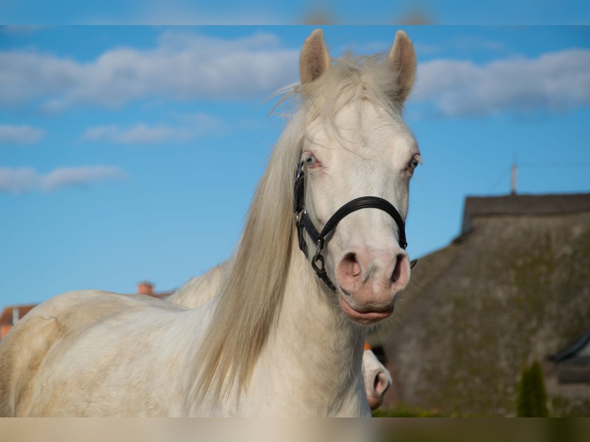 A VERY SPECIAL FIND: Excellent 2-year-old Welsh D mare with a dream temperament for sale Flower is a sweet, expressive, young mare with a stunning Cremello coat. She has grown up alongside her peers and within a herd. Her approximate height is 14.1 hh, and she has a strong, robust build. Her half-brother is a performance-tested stallion and a Siegerhengst in the ZfdP. Her dam is a premium mare awarded by the association and has only premium offspring. The sire is approved by the ZfdP. Her pedigree is very interesting for breeding, featuring bloodlines from Popsters, Nebo, and Synod. It is very difficult for me to part with her, but I cannot keep them all. I am looking for an experienced, loving new home. With her calm and trusting nature, she would be suitable for children and young riders—of course, with proper training! She is regularly vaccinated and dewormed and has been introduced to the farrier. In the herd, she is very social and tends to be lower in rank.