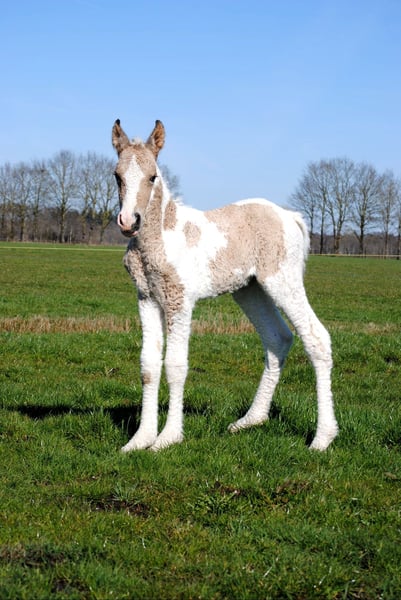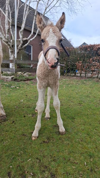 Heavenlysmiles Power Chick Auch bekannt als Chickie Am 16. März '26 war es soweit: Chris brachte eine wunderschöne, falbe gescheckte Tochter mit traumhaft lockigem Fell zur Welt. Sie ist sò schön 🥰 Sie stand sofort auf und fand direkt das Euter – ein großartiger Start! Chickie stammt von unseren besten Tieren und von mehreren Tieren aus unserer eigenen Zucht väterlicher- und mütterlicherseits ab. Wir wissen also genau, was in ihr steckt ♡ Sie wird eine stattliche Größe von 1,60 m erreichen. Sie ist sehr freundlich und angenehm neugierig; sie kommt immer, um nach einem zu sehen! Ihre Bewegungen zeigen einen raumgreifenden, kraftvollen Gang – nicht kniehoch, sondern eher schwebend und schwungvoll. Ein wahrer Augenschmaus und bald eine Freude in der Arbeit. Wir halten ihren Typ für einen Traumtyp: eine wunderschöne Größe von 1,58/1,60 m und ein robuster, eleganter Körperbau. Sie trägt das sp6-Gen für lockiges Fell. Daher wird sie eine wunderschöne, kräftige Stute mit einem außergewöhnlich schönen Typ, einer prächtigen Farbe mit leichten Winterlocken und einem wundervollen Charakter. Kurz gesagt: ein vielversprechendes Nachwuchspferd! Für weitere Informationen senden Sie uns gerne eine Nachricht. Wir haben ein Fotoalbum auf Facebook und viele Videos auf unserem WhatsApp-Kanal!