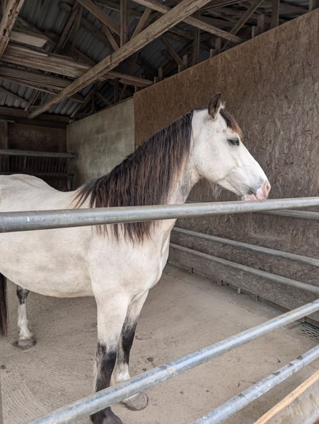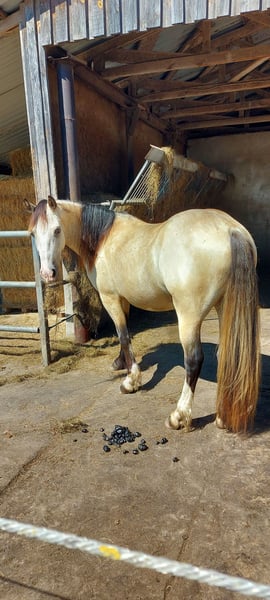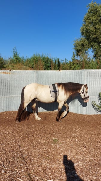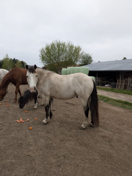 Das ist die Gelegenheit für Leute, die ein unverbrauchtes Pferd zum Selbstausbilden suchen und noch dazu mit toller Optik. Es fällt mir sehr schwer, mich von meinem Pferd zu trennen, aber er hat mehr Förderung verdient, als er sie derzeit von mir bekommen kann. Norvys ist bei mir, seit er 7 Monate alt ist und hatte seither viel Zeit, sich einfach pferdegerecht zu entwickeln und hat nie schlechte Erfahrungen gemacht. Eckdaten: Wird im Juli 7 Jahre alt, Stockmaß ca. 150 cm Steht derzeit in landwirtschaftlichem Betrieb im Offenstall und auf Weide, kennt keine Boxenhaltung oder Eindecken, ist Hunde, Schafe, Katzen, Hühner und landwirtschaftliche Großgeräte gewöhnt. Lebt aktuell in kleiner Wallachherde und ist bestens sozialisiert, eher rangniedrig. Bekommt ausschließlich Heulage, frisst aber auch Heu und Silage. Gesundheit: kennt den Schmied, ganz brav beim Tierarzt, Zähne erst gemacht, aber nie große Probleme gehabt, gute Hufe, war einmal bei der Ostheopathin, keine Probleme diagnostiziert, hatte eine längerwährende unerkannte Selenunterversorgung-wird daher dauerhaft mit Selen-Emulgat versorgt, seither keine Probleme mehr mit Fellwechsel und Kotwasser. Durchgeimpft auch mit West-Nil. Läuft barhuf. Bisherige Ausbildung: am Boden gearbeitet, im RoundPen longiert frei, an Einfachlonge, Doppellonge, mit Fahrzügel angetestet, kennt Longiergurt und Sattel, sowie Dreieckszügel; bisher gebisslos mit Kappzaum, Sidepull und Bitless Bridle gearbeitet; baumlosen Sattel von Barefoot verwendet. Hört gut auf Stimmkommandos, gutte Grundgangarten, gut ausbalanciert, kennt Spaziergänge im Gelände. Habe ohne Sattel schon drauf gesessen, hat er gut mitgemacht. Charakter: zuckersüß, neugierig, aufgeschlossen, möchte beim Training gefallen, möchte alles richtig machen, einem immer zugewandt, manchmal ein Clown, lässt sich überall anfassen, Putzen kein Problem, steht still, Verladetraining ist schon eine Weile her, hat aber gut funktioniert, mag Kinder, bewegt sich gern ohne eilig oder gar stürmisch zu sein, lernwillig. Sonstiges: hat volle englische Papiere der Welsh Cob Society, stammt aus Cornwall/England, habe ihn direkt von der Züchterin gekauft Was ich mir für ihn wünsche: jemanden, der ihn als Freizeitpartner fördern kann und mehr Zeit für ihn hat als ich. Eine weiterhin schonende Ausbildung vielleicht in mehreren Sparten (Dressur, Western, Fahren ...), er wäre sicher für vieles geeignet, ein typischer Welsh Cob eben. Ihm macht Wetter (Sonne, Regen, Schnee...) nichts aus, ein Offenstall wäre daher schön. Da mir sein Wohl am Herzen liegt, gilt Platz vor Preis. Die komplette Ausrüstung sowie Putzzeug kann mitgegeben bzw. mitverkauft (Sattel + Sidepull) werden. Da ich telefonisch nicht immer zu erreichen bin, kontaktiere mich bitte per WhatsApp unter 0176-55561379