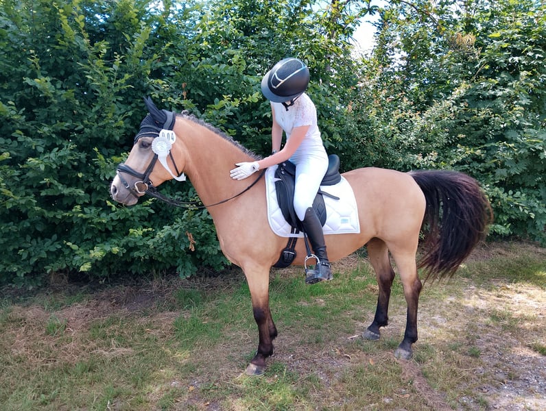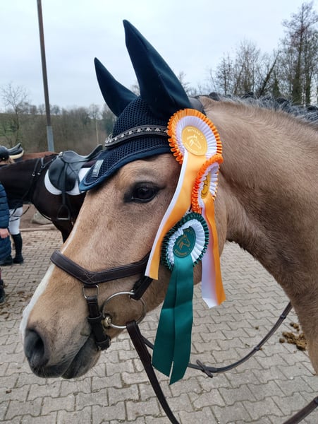 Verkaufe Welsh-D Wallach, geb. 2018, in beeindruckendem Buckskin-Farbton. Mit einem Stockmaß von 142 cm ist er die perfekte Größe für ambitionierte junge Reiter, die ein vielseitiges und zuverlässiges Pony suchen. Dieser Wallach überzeugt durch seine hervorragende Springveranlagung und seine ausgeglichene, gut-rittene Art. Er ist freundlich im Umgang, aufmerksam und zeigt stets eine positive Einstellung im Training und im Turnieralltag. Dank seiner soliden Grundausbildung ist er sowohl für den Freizeitsport als auch für den Turnierreitsport geeignet. Ein echtes Allround-Talent, das durch seine Qualität und sein Temperament begeistert.