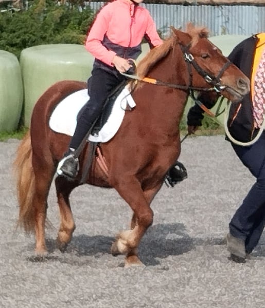 Welsh-Partbred-Stute, die im Jahr 2026 drei Jahre alt wird, fuchsfarben, wird etwa 1,15 m groß. Geprägt, fast eingeritten, geimpft gegen Influenza, Tetanus und Rhino.