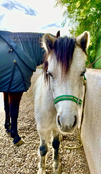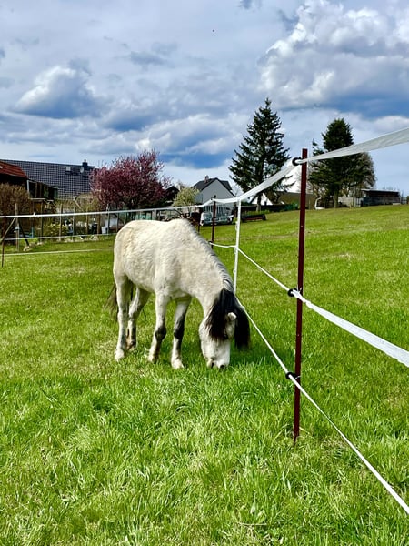 Dieser kleine Schatz ist ein richtige Perle. So lieb im Umgang mit Kinder, sie schlägt und beißt nicht, liebt es betüdelt zu werden. Sie ist absolut gesund und mit ihrem blauen Auge ein richtiger Eycatcher. Sie hat sehr gute Hufe, geritten ist sie nicht, es saß aber schon mal ein Kind drauf und das ging problemlos, zum Fahren wäre sie auch sehr geeignet.