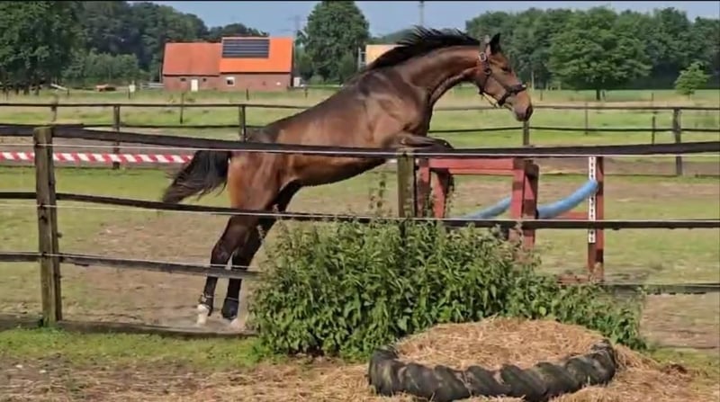 Ein junger Hengst mit großem Herzen, klarem Kopf und internationalem Sportblut Manche Pferde überzeugen durch Leistung, andere durch ihren Charakter. Gajano vereint beides. Gajano ist am 17.02.2024 geboren. Gajano ist kein lauter Typ, sondern ein junger Hengst, der aufmerksam zuhört, mitdenkt und Vertrauen schenkt. Ein Pferd, das man nicht nur ausbildet, sondern mit dem man gemeinsam wächst. Was Gajano besonders macht, ist sein außergewöhnlich angenehmes Wesen. Er ist sehr menschenbezogen, sucht aktiv den Kontakt und zeigt sich im täglichen Umgang freundlich, neugierig und kooperativ. Neue Situationen meistert er unerschrocken und nervenstark, ohne dabei überdreht zu reagieren. Er arbeitet gerne mit, zeigt eine klare Arbeitsbereitschaft und bleibt dabei stets ausgeglichen. Für sein junges Alter bringt er bereits eine bemerkenswerte innere Ruhe mit. Neue Eindrücke nimmt er interessiert und gelassen auf. Man merkt ihm an, dass er lernen möchte und Freude daran hat, Aufgaben gemeinsam mit dem Menschen zu lösen. Gajano kennt bereits das Grund ABC im Umgang, altersgerechte Bodenarbeit sowie lange, ruhige Spaziergänge im Gelände, auch außerhalb des Hofes. Dabei zeigt er sich stets brav, aufmerksam und mutig. Eigenschaften, die man nicht antrainieren kann, sondern die tief im Charakter verankert sind und später im Sport den entscheidenden Unterschied machen. Abstammung Auch seine Genetik erklärt vieles von dem, was Gajano bereits jetzt zeigt. Sein Vater Goldberg KWPN ist ein dressurbetonter Hengst mit sehr guter Rittigkeit und überzeugenden Grundgangarten. Er war zweiter Reservesieger der westfälischen Körung und ist bekannt dafür, typvolle, leichtrittige und kooperative Nachkommen zu vererben, Pferde, die Spaß machen und sich ehrlich ausbilden lassen. Die Mutter Szandi, eingetragen im Stutbuch I des ungarischen Warmbluts, bringt Substanz, Härte und Leistungsbereitschaft mit. Sie gibt ihrem Sohn nicht nur Kraft, sondern auch mentale Stärke und Ausgeglichenheit. Der Muttervater Kalmers d’Ariel Selle Français ist ein Sohn des legendären Diamant de Semilly, einem der erfolgreichsten Springvererber der Welt, international bis 1,60 Meter erfolgreich, Team Weltmeister und Vater unzähliger Grand Prix Pferde. Ergänzt wird diese Linie durch ungarisches Gidran Blut, bekannt für Gesundheit, Langlebigkeit und Zuverlässigkeit. Sportliche Perspektive Gajano vereint genetisch wie charakterlich beste Voraussetzungen für den Sport. Er zeigt gute Grundgangarten, natürliche Balance und lässt deutliches Springvermögen mit Kraft und Technik erwarten. Gajano eignet er sich hervorragend für den Springpferdesport, die Vielseitigkeit oder eine vielseitige Grundausbildung mit späterer Spezialisierung. Dank seines klaren Kopfes und seiner Menschenbezogenheit ist er besonders interessant für Reiter, die Wert auf ein ehrliches, mutiges und verlässliches Nachwuchspferd legen. Kurzinfos Name Gajano vom Derkingshof Rasse Westfälisches Reitpferd Geschlecht Hengst Farbe Schwarzbraun Geboren 17.02.2024 Korrekt registriert und mikrogechipt Altersgemäß gefördert und bestens sozialisiert ✨ Fazit Gajano ist ein junges Pferd, das man nicht nur sieht, sondern fühlt. Ein Hengst mit feinem Charakter, großem Vertrauen zum Menschen und einer Abstammung, die alle Türen offenlässt. Ein Nachwuchspferd für Menschen, die nicht nur Leistung suchen, sondern einen echten Partner für die Zukunft. Standort: Legden 01514 1677577 Weitere Informationen, Fotos und Videos gerne auf Anfrage.