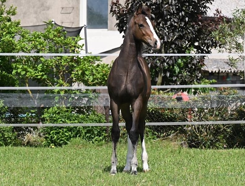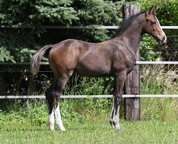 This tall, black-brown, head-focused, very large two-year-old stallion (*February 10, 2024) combines several premium stallion lines in his pedigree. Esprit de Novo traces back on the sire’s side to the successful breeding stallion Escolar. On the dam’s side, there are also De Niro, Quando Quando, Sandro, and Delano. From the dam line, successful sport horses have already been bred, including a mare by Fidertanz (successful in S-Dressage) and a three-year-old state premium mare by Fürstenball. The dam line has also produced numerous successful dressage and show jumping horses. Please contact only by phone, SMS, or WhatsApp at +49 172 5488966 if you are interested.