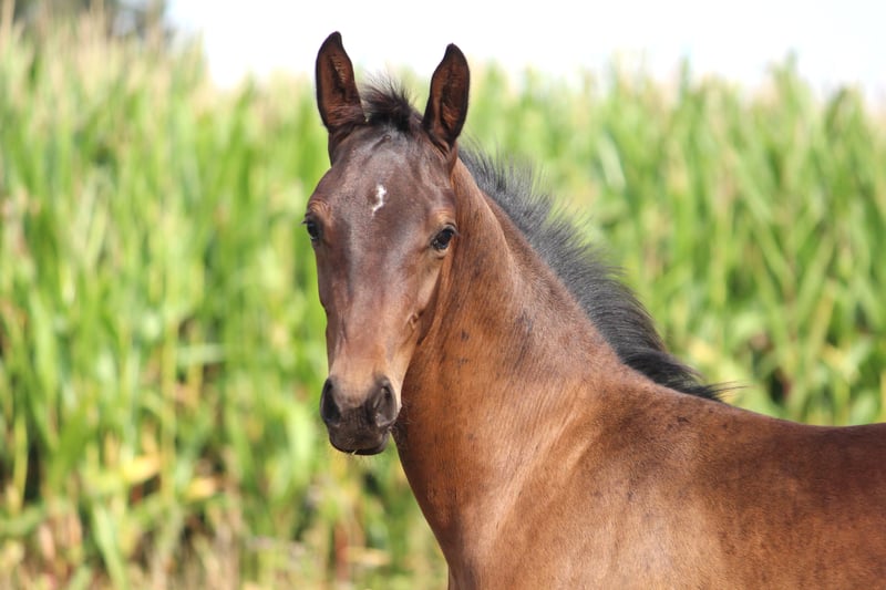 Ten typowy, energiczny ogierek cieszy się nie tylko trzema bardzo dobrymi, taktownymi i wyrazistymi podstawowymi chodami oraz niezwykle poprawnym fundamentem. Syn Sir Escolara, rolnik, jest również niezwykle czarujący, zorientowany na ludzi, ciekawy i chętny do nauki. Opanował już kompletny ABC źrebaka. Ojciec Sir Escolar ma trzy doskonałe i bardzo dynamiczne podstawowe chody i był częścią partii premium na licencji Westfalii. Matka: Finest x Samarant