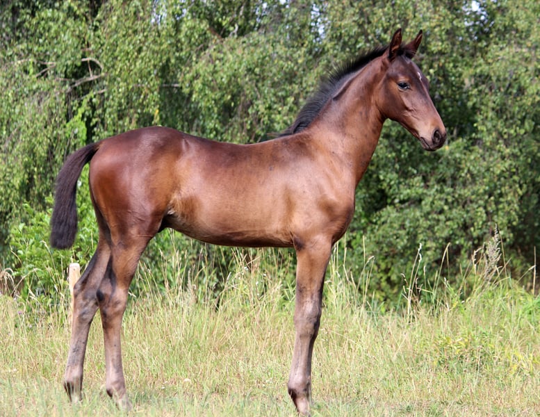 Este potro tipo y vigoroso agrada no solo por sus tres andares básicos muy buenos, discretos y expresivos y su base extremadamente correcta. El hijo del propietario Sir Escolar también es extremadamente encantador, orientado a las personas, curioso y dispuesto a aprender. Ya domina el potro completo ABC. El Padre Sir Escolar tiene tres pasos básicos excelentes y altamente dinámicos y pertenecía al lote premium en la licencia de Westfalia. Madre: Finest x Samarant