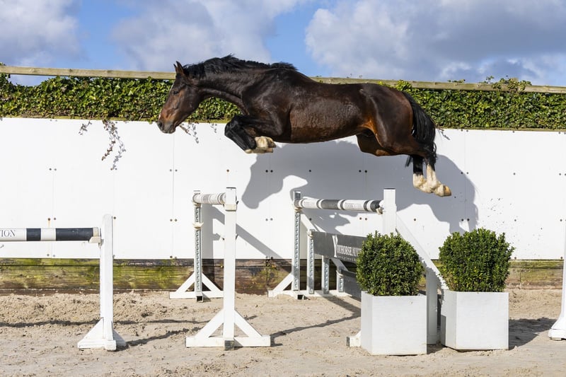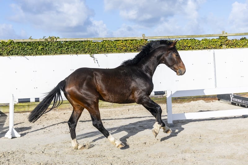 Victory is a horse with a lot of suppleness and looseness, combined with a lot of push-off. He jumps with great ease and overview and shows a very nice way of jumping. We were very impressed by this horse. A horse that does everything with calmness and quality. He comes directly from the breeder, who unfortunately has passed away. As a result, he is slightly behind in his training, but this has also allowed him to fully develop physically into a mature horse. This gives the opportunity to build everything up from the beginning yourself. The horse is not yet broken in and can show some stallion behavior in handling, but certainly does not have a bad character. Sire Varihoka du Temple competes at 1.60m Grand Prix level and is a son of Luigi d’Amaury (1.60m), from the influential Quidam de Revel line. A stallion that passes on scope, mentality and quality. Dam Carlotta is a daughter of Continus Grannus and comes from a versatile performance family. The damline produces both showjumping and dressage horses at level: Cornetta – 1.40m Aktion Pur Z – approved stallion, 1.60m Rocky Mountain – 1.45m Quidor – 1.45m Dea – 1.40m Dall-Mayer – Grand Prix dressage A family with versatility and proven performance in sport.