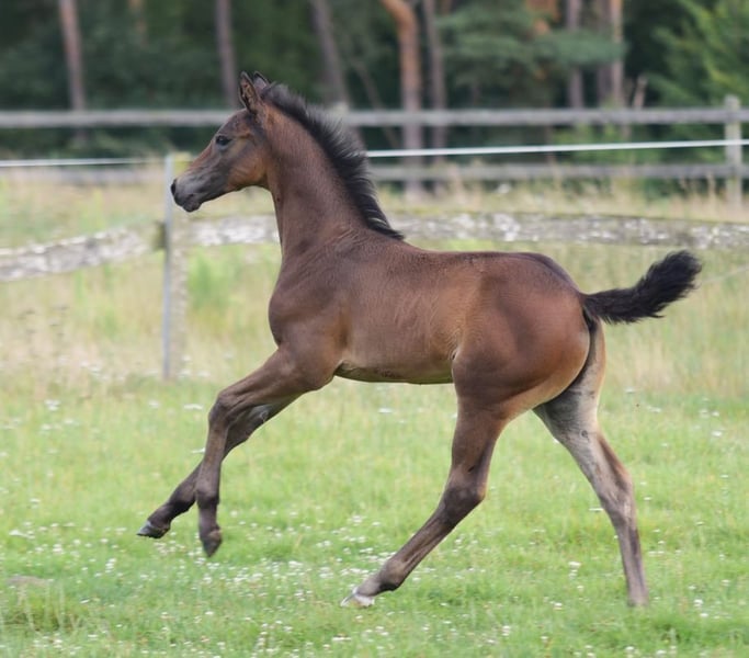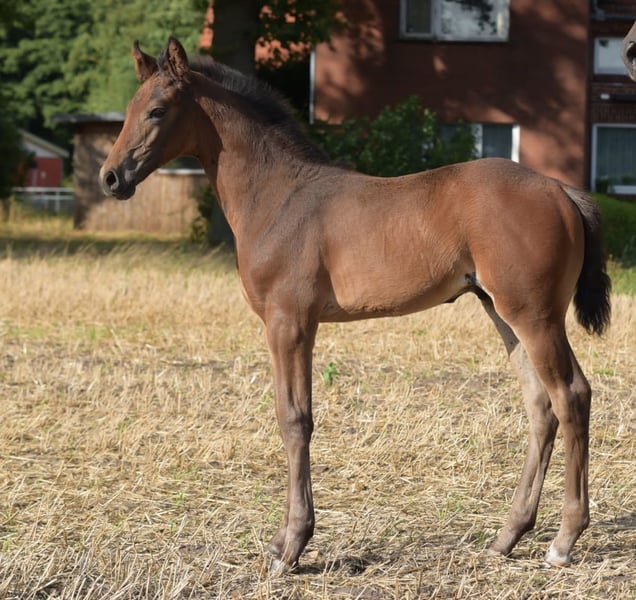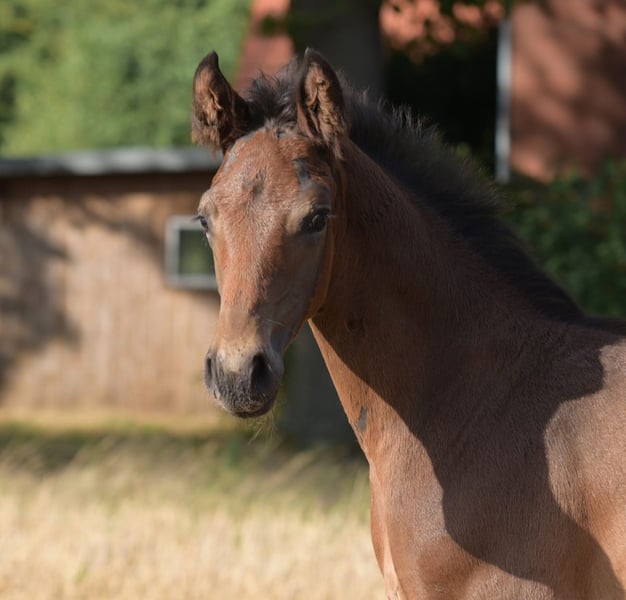 Brown colt born on 09.06.2025 for sale. Mother is a state premium mare from a successful dam line. Father: Diamantenglanz (Information from Landgestüt Warendorf)