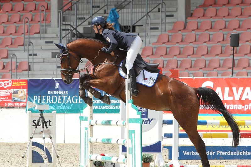 Diva es una yegua de 9 años, hija de Stakkato Gold. Tiene un tamaño medio y cuenta con buena montabilidad y comodidad al montar. En el recorrido, destaca por su visión y actitud. También las distancias no óptimas no son un problema para ella. En el manejo, a veces es un poco yegua, pero no es maliciosa, solo un poco diva. Diva está herrada, pero también conoce la vida sin herraduras. Disfruta de salir al pasto regularmente y no le es ajeno el terreno. Actualmente, está compitiendo con amazona en saltos de la categoría L con éxito. Para más información y citas para visitar, no duden en preguntar por WhatsApp o teléfono.
