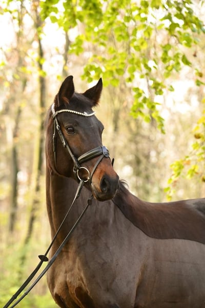 For sale is an impressive 8-year-old mare. This dark bay beauty captivates not only with her elegant appearance but also with her talent and willingness to work with her rider. She has already achieved multiple placings in L-level dressage competitions. **Features:** - **Breed:** German Riding Horse (Deutsches Reitpferd) - **Gender:** Mare - **Year of Birth:** 2016 - **Color:** Dark Bay - **Height:** 16.1 hh - **Training Focus:** Dressage This mare is ideal for someone who has the desire and time to grow together with a wonderful horse. She consistently demonstrates motivation and eagerness to learn, making her an excellent partner for talented dressage riders. Her harmonious conformation and affection for people make daily training a pleasure. She can be ridden alone or in a group, suitable for hacking out. If you are looking for a horse that seeks a strong bond with its handler and brings joy to everyday handling, this mare could be the perfect choice for you. Please do not hesitate to contact us for more information or to arrange a meet-and-greet. We look forward to introducing you to this talented mare in person. A trial ride fee of €50 applies, which will be deducted from the purchase price.