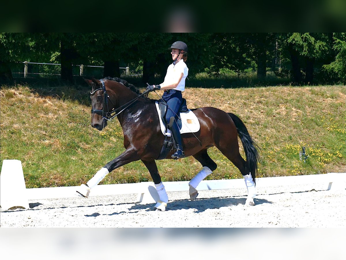 This particularly friendly and easy-to-handle dressage mare has won up to M** level and has been placed in S class. At the best age, she offers all the prerequisites for a successful entry into the higher classes, even for a younger rider. A current vet check is available. For further information and to arrange an appointment for a trial ride, please feel free to contact us by phone at 0172 – 5330585.