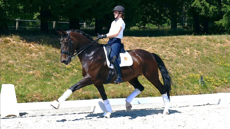 Particulièrement amicale dans ses interactions, cette jument de dressage est facile à manipuler. Elle a remporté des victoires jusqu'en M** et s'est placée en catégorie S. De plus, étant dans la fleur de l'âge, elle offre toutes les conditions nécessaires pour une entrée réussie dans les classes supérieures, même pour un jeune cavalier. Un contrôle vétérinaire récent est disponible. Pour plus d'informations ainsi que pour convenir d'un rendez-vous pour un essai, n'hésitez pas à nous contacter par téléphone au 0172 – 5330585.