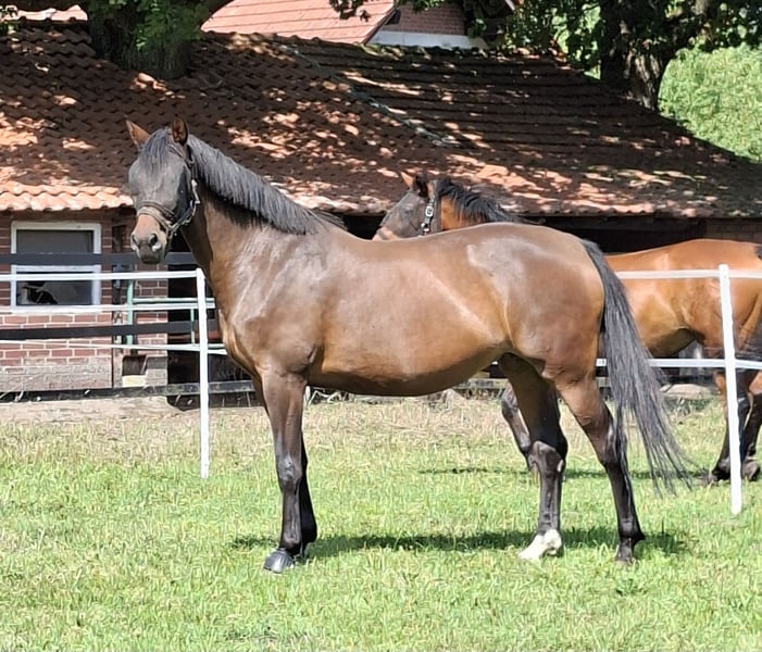 For sale is a typy premium mare. Bellini Royal x Lapis Lazuli x Cordial Medoc The mare was backed at the age of three and then went into breeding. She has produced four foals so far. Her oldest daughter, Complication-M, was sold at a high-profile auction in Goch. Lot 4: Sweet Spot Bibi-M is being sold because we no longer wish to breed and she is now looking for a new purpose. Please feel free to contact us if you're interested.