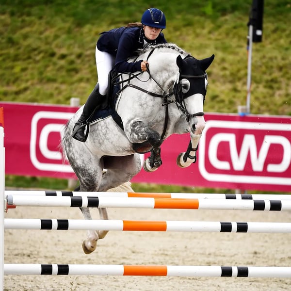 Sprzedaję moją klacz z Westfalii, pieszczotliwie nazywaną Brummer. Ma 11 lat, osiągnęła międzynarodowe wyniki na poziomie 1,20 m oraz liczne miejsca na podium i zwycięstwa na poziomach A, A** i L na arenie krajowej. W jej genach drzemie jednak znaczny potencjał – podczas treningów skacze pojedyncze przeszkody do 1,40 m. W zeszłym roku skupiłam się bardziej na młodych koniach, przez co Brummer nie otrzymała wystarczającej uwagi, dlatego szukam dla niej nowego domu. Może być jeżdżona także przez początkujących, nie wykazuje złych nawyków, jest spokojna i posłuszna. Dobrze znosi czyszczenie kopyt i załadunek do traileru. W razie pytań proszę o kontakt telefoniczny pod numerem 01704690046. Chętnie umówię się na jazdę próbną.