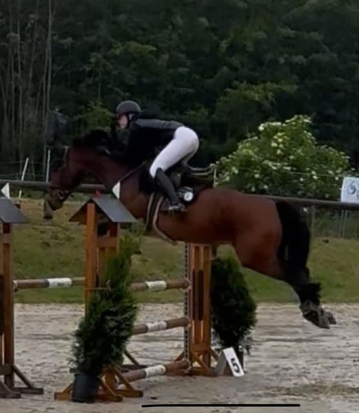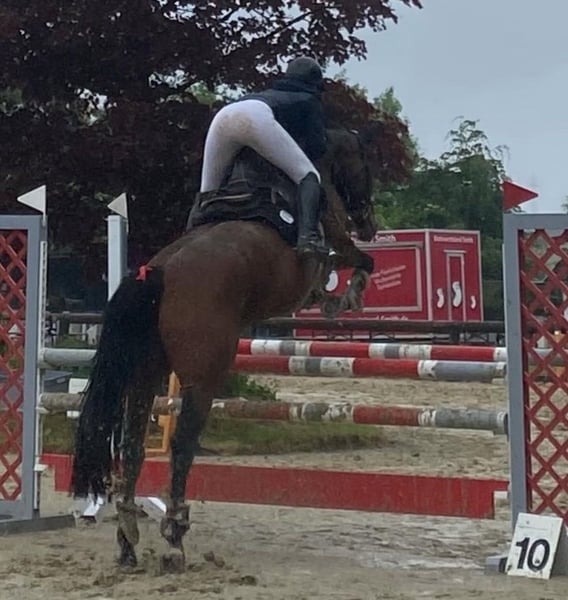 Mit schwerem Herzen trenne ich mich von meiner 12 jährigen Stute Conchi einer Lebenspartnerin mit viel Potenzial. Conchi begleitet mich jetzt seit über dreieinhalb Jahren und war in dieser Zeit nicht nur sportlich ein absoluter Glücksgriff, sondern auch ein echtes Herzens und Verlasspferd. Gemeinsam haben wir viele Erfolge gefeiert sie hat mich zuverlässig vom Springreiter-Wettbewerb bis zu Platzierungen in der Klasse L getragen. Im Parcours fühlt sie sich ganz in ihrem Element und konnte bereits mehrfach Prüfungen der Klasse M für sich entscheiden.(potenzial für mehr vorhanden) Auch in der Dressur ist Conchi ambitioniert und zeigt sich dort rittig, mit schönen Platzierungen bis zur Klasse A. Darüber hinaus konnte sie auch in der Vielseitigkeit überzeugen: Beim Bundesfinale in Hannover erreichte sie Wertnoten bis zu 8,0. Auch dieses Jahr nahm sie bereits mehrfach am Geländetraning statt. Außerdem siegte sie beim Junioren Championat unserers Kreisreiterverbands. Sie hat viele weitere Erfolge wie zum Beispiel Achter Noten beim Westfalen 8 Turnier. Conchi ist kerngesund, war während der gesamten Zeit bei uns nie verletzt oder krank und befindet sich in einem sehr guten Trainings und Allgemeinzustand. Sie ist verladefromm, unkompliziert im Alltag und zeigt sich auf Turnieren absolut nervenstark und routiniert. Im Springen überzeugt sie mit einer guten Arbeitseinstellung, einem idealen Grundtempo und einem ausgeprägten Vermögen. Man merkt ihr an, dass sie diese Disziplin mit Leidenschaft ausübt. Conchi stammt aus einer leistungsgeprüften westfälischen Linie und ist im Westfälischen Pferdestammbuch e.V. eingetragen. Für sie wünschen wir uns ein Zuhause, in dem sie weiterhin gefordert wird und ihrer neuen Bezugsperson genauso viel Freude schenkt, wie sie es mir über die vergangenen Jahre getan hat. Sie eignet sich sowohl als Juniorenpferd für ambitionierte Nachwuchsreiter:innen als auch als zuverlässige Partnerin für jugendliche oder jüngere Kinder, die in den Turnier Sport einsteigen möchten. Ein Probereiten ist nach Absprache gerne möglich. Wir bitten jedoch darum, dieses nur bei ernsthaftem Interesse wahrzunehmen.