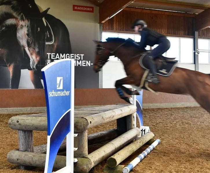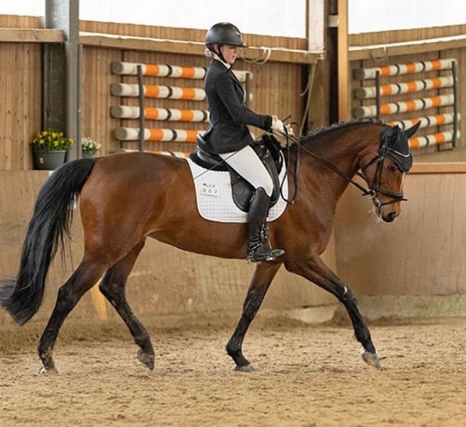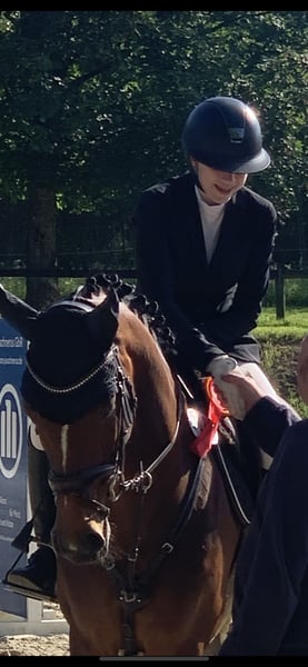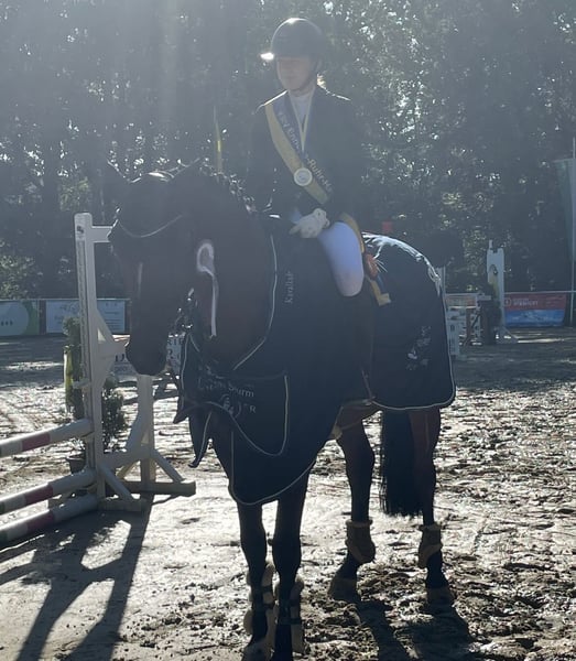 With a heavy heart, I am parting with my 12-year-old mare Conchi, a life partner with great potential. Conchi has been with me for over three and a half years and during this time, she has not only been a fantastic sport horse but also a true heart horse and a reliable companion. Together, we have celebrated many successes; she has reliably carried me from show jumping competitions to placements in the L class. In the course, she feels completely in her element and has already won several M class competitions (with potential for more). In dressage, Conchi is ambitious and shows herself to be rideable, achieving nice placements up to the A class. Furthermore, she has also impressed in eventing: at the national finals in Hanover, she achieved scores of up to 8.0. This year, she has already participated multiple times in cross-country training. Additionally, she won the junior championship of our local riding association. She has many other successes, such as eighth place at the Westfalen 8 tournament. Conchi is in perfect health, has never been injured or sick during her time with us, and is in very good training and overall condition. She is easy to load, uncomplicated in everyday life, and shows absolute composure and routine at competitions. In jumping, she impresses with a good work ethic, an ideal base tempo, and a pronounced ability. You can tell that she practices this discipline with passion. Conchi comes from a performance-tested Westphalian lineage and is registered with the Westphalian Horse Studbook e.V. For her, we wish for a home where she will continue to be challenged and bring as much joy to her new person as she has brought to me over the past years. She is suitable both as a junior horse for ambitious young riders and as a reliable partner for youth or younger children who want to enter the competition sport. A trial ride is possible by arrangement. However, we kindly ask that this is only taken up with serious interest.