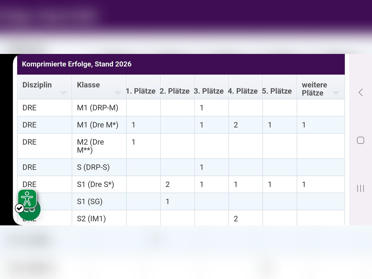 Verkaufe mein absolutes One in a Million Horse. Ein Pferd das wirklich keine Wünsche offen lässt. Von Dressurpferde A bis S** mehrfach platziert. Im Jahr 2026 bereits M* und M** siegreich. Frankfurter Festhalle 2023, 2024 und 2025 gelaufen. Wiesbadener Pfingstturnier 2024 gelaufen. Aktuelles Siegerpferd deutsche Meisterschaft des Fab in M* und M**. Kreismeisterschaft Siegerpferd 2023 LK 3 (M*/M**) Kreismeisterschaft Siegerpferd 2024 LK 2 (S*/S**) Hat Platzierungen und Siege aus 3 verschiedenen Ländern ( Holland/Tschechien/Deutschland) Verzeiht kleine Reiterfehler Ist von einer Amateurin geritten Wird von jugendlicher Reitbeteiligung mitgeritten Geht alleine und in der Gruppe ins Gelände Lässt sich alleine verladen Hat nur vorne Hufeisen Deckt gut ab Kennt: Kleine Gymnastiksprünge Doppellonge Kappzaum Gelände Übernachtungsturniere Trubel und laute Musik sowie Flutlicht Kann problemlos mit Stuten und Wallache zusammen gestellt werden. Ein absolutes Traumpferd für den anspruchsvollen Amateur der jeden Tag Freude möchte. Auch ideal für sportlich ambitionierte Pony Umsteiger die ohne Gefahr ins grosse Viereck möchten. Sie besitzt Go ohne zu heiss zu werden. Steht aktuell von 7-19 Uhr draussen und wird nur in eine ähnlich faire Haltung verkauft. Bei Interesse kann das passende Zubehör für das Pferd miterworben werden. Das Pferd hat beim an reiten ein Hobby entwickelt, nur daher noch in dieser Preiskategorie. Keinerlei Probleme oder Beeinträchtigungen bekannt und jedes Jahr auf dem Turnier vorgestellt. Wird nur in allerbeste Hände verkauft.
