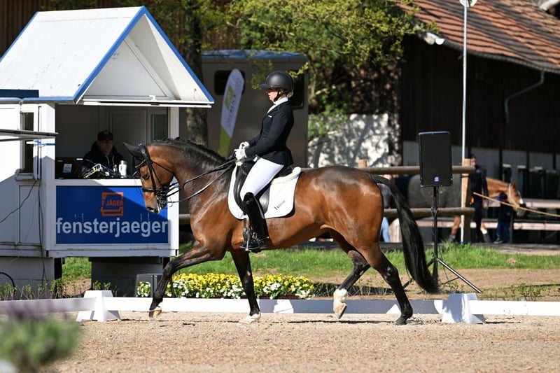 Unsere wunderschöne Fairytale ist ein ideales Lehrpferd. Ausgestattet mit drei guten Grundgangarten kann die Stute zahlreiche Siege und Platzierungen bis zur Klasse S** vorweisen. Sie ist immer motiviert und zeitgleich trotzdem sehr lieb im Umgang und unter dem Sattel. Auch mit Amateurreiter kann unsere Fairy einige Siege und Platzierungen vorweisen. Sie ist der ideale Lehrmeister. Bei richtiger Hilfengebung sind alle Lektionen bis S** jederzeit abrufbereit.