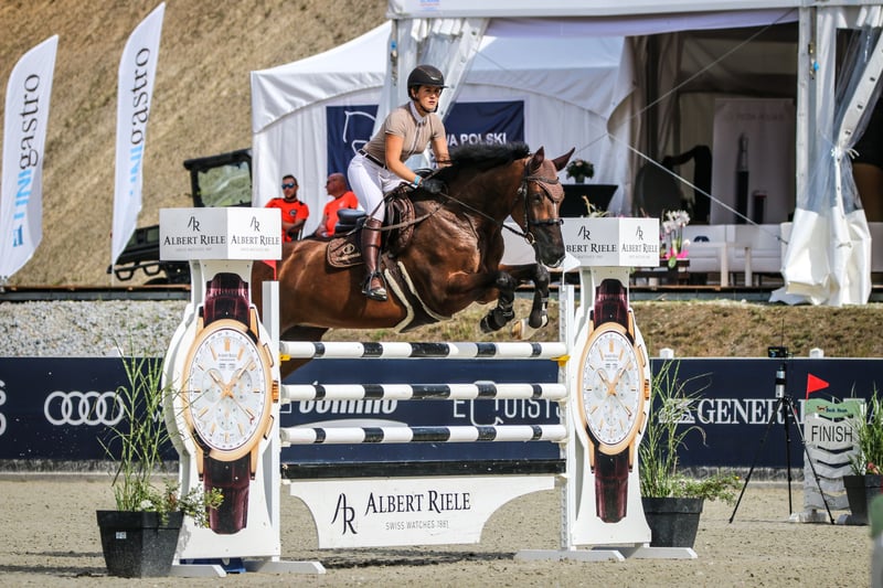 Westfalia L is a strong, large, and brave mare, ambitious with a beautiful jumping line and a wonderfully working hindquarters. She is a horse competing in children's selection competitions, healthy and perfect for both a child and a junior. She feels great in competitions at heights of 130 - 145 cm, fast, intelligent, super well-trained with a good character.