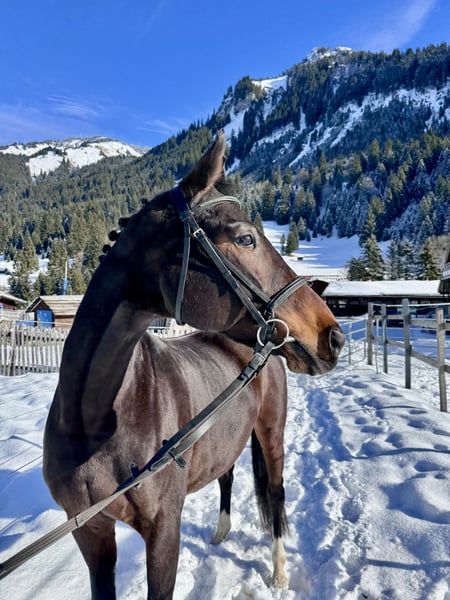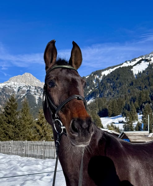 Wir haben Scarlette für unsere Reitschule gekauft, müssen uns jedoch eingestehen, dass sie bei uns unterfordert ist. Scarlette ist eine absolut feinfühlige und sensible Stute - bei der Longenarbeit genügt es, mit ihr zu flüstern. Sie ist absolut aufmerksam und fein im Umgang. Ob am Anbindeplatz oder in der Box - sie ist immer brav beim Putzen und Hufe auskratzen. Sie lässt sich anstandslos satteln und trensen und ist immer artig im Handling. An der Longe und bei der Bodenarbeit macht sie viel Spaß, da sie immer aufmerksam gegenüber ihrem Menschen ist. Beim Reiten ist sie mit viel Go ausgestattet und macht auch hier Spaß. Sie ist aufgrund ihres Tempos und auch ihrer Stärke kein Anfängerpferd - und kann auch mal die Stute unterm Sattel zeigen. Daher auch nicht für ängstliche Reiter geeignet. Insgesamt ein sehr liebenswertes Pferd, das leider nicht in unser Konzept des Kinder- und Anfängerreitunterrichts passt und daher nun eine passende Reiterin sucht, die ein umgängliches, aber dennoch sportliches Pferd im gehobenen Freizeitbereich sucht.