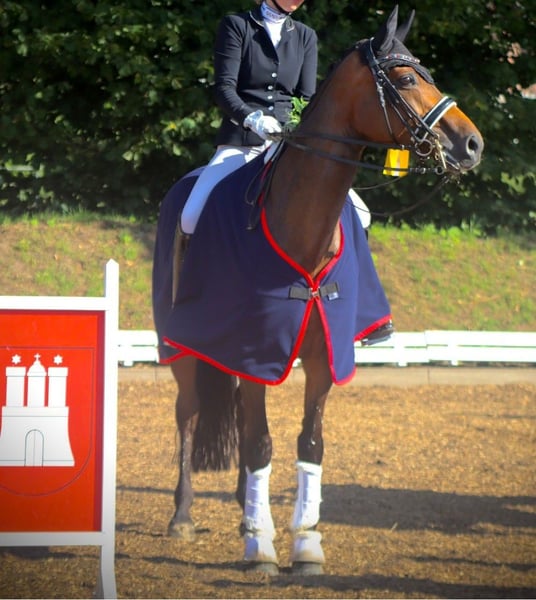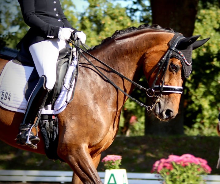 16-jährige Stute mit solider Ausbildung sucht neuen Wirkungskreis Zum Verkauf steht unsere 16-jährige Stute mit ansprechender Ausbildung und Erfahrung im Dressurviereck. Unsere "Jolie" ist bis zur Klasse "M" aktuell siegreich auf Turnieren vorgestellt worden und bewegt sich derzeit auf einem soliden M/S-Niveau. Sie hat aktuell den Hamburg Cup U25 Dressur in Hamburg-Bergstedt gewonnen. Sie verfügt über 3 überdurchschnittliche GGA mit viel Schwung und Taktsicherheit. Die Stute ist sehr brav im Umgang, menschenbezogen und anhänglich. Im Gelände sowie bei der Stangenarbeit ist sie zuverlässig und ausgeglichen. Auch an der Springarbeit hat sie viel Freude an Bodenarbeit und der Zusammenarbeit mit ihrem Menschen. Sie ist auf dem Turnier bis A**-Springen placiert. Von der Arbeitseinstellung her ist sie stets motiviert und gehfreudig. Sie eignet sich besonders gut als Umstieg vom Pony aufs Großpferd. Gesundheitlich ist sie einwandfrei, war nie ernsthaft krank oder lahm. Ein aktueller TÜV könnte bei Interesse angefertigt werden, Bei Interesse und weiteren Fragen können Sie uns gerne kontaktieren.