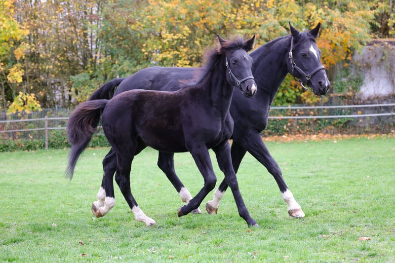 Zum Verkauf steht eine wunderschöne Westfalen-Stute, geboren im Jahr 2025. Sie ist eine beeindruckende Rappstute mit einem Stockmaß geschätzten Endmaß von 168 cm. Sie überzeugt durch ihre elegante Erscheinung, ihre Unerschrockenheit und ihr freundliches Wesen. Sie ist bestens für den Spring oder Dressursport geeignet und zeigt bereits viel Talent in den Gangarten und im Springen. Ihre Bewegungsqualität und ihr springfreudiges Temperament machen sie zu einer vielversprechenden Partnerin für ambitionierte Reiter. Sie hat eine solide Grundausbildung des Fohlen ABCs sowie auch regelmäßigen Kontakt zum Hufschmied. Alle tierärztlichen Untersuchungen wurden regelmäßig durchgeführt. Bei Interesse oder weiteren Fragen stehe ich Ihnen gerne zur Verfügung. Vereinbaren Sie gerne einen Termin für eine Besichtigung !
