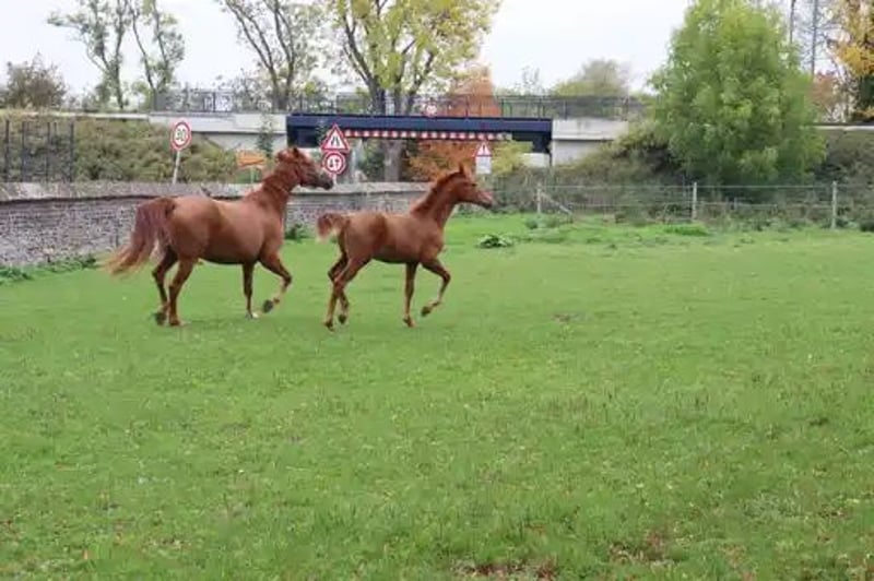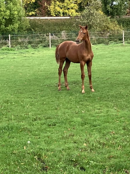 The tall young lady impresses with her charm, beauty, charisma, and loving character. Additionally, she is very athletic (despite the very dry pasture) with an excellent walk, an expansive trot, and an obvious uphill canter. Her father, Dynamic Dream, left the licensing as a champion stallion, record price holder, and is endowed with outstanding hereditary power. Many of his offspring have been auctioned for very high prices. The foal's grandmother is the full sister of the internationally successful Alive and Kicking under Charlotte Dujardin. At just nine years old, she won in the Grand Prix, Grand Prix Special, and in the freestyle. She was named as a reserve horse for the 2024 Olympics. The maternal grandfather, Vincent Maranello (Danish champion stallion by Blue Horse Zack / Future Cup / Romanov), is the sire of the well-known Zupermann in Westphalia. He is also internationally successful in the Grand Prix. https://youtube.com/shorts/sQ9gW7MkFGg?si=qgZwoAjaw2xwPFnp **Features:** - Breed: Westphalian - Gender: Mare - Year of Birth: 2025 - Color: Chestnut - Suitability: Dressage For further information or to schedule a viewing, please feel free to contact me. We look forward to your inquiry!