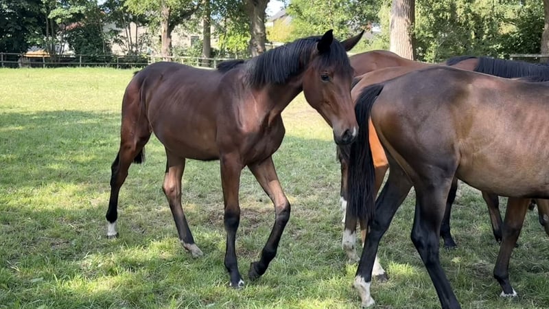 Vendemos una potranca de un año de Balou du Reventon x Diarado x Landgraf I x Capitol del Stamm 741 de Holsteiner. Su madre fue colocada en el Bundeschampionat a los 5 años, tiene un semental premiado de Oldenburg de Cornet Obolensky y su hija de 8 años está actualmente colocada con éxito en el deporte hasta 1,50 m. Un linaje de yeguas asegurado como base para una gran promesa de futuro. Con gusto responderé a todas las preguntas adicionales por teléfono o por WhatsApp.