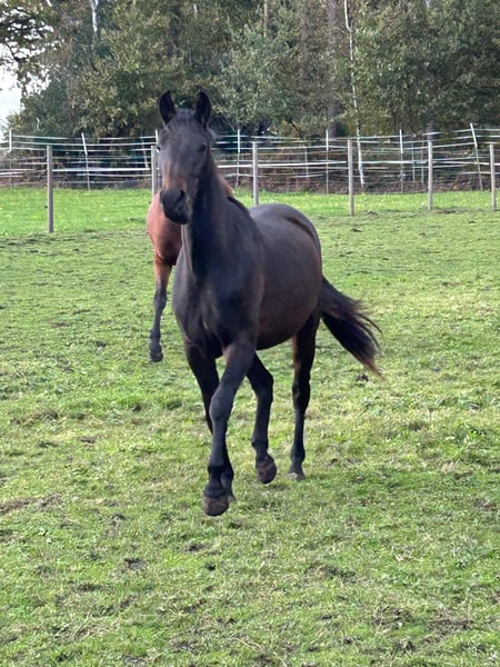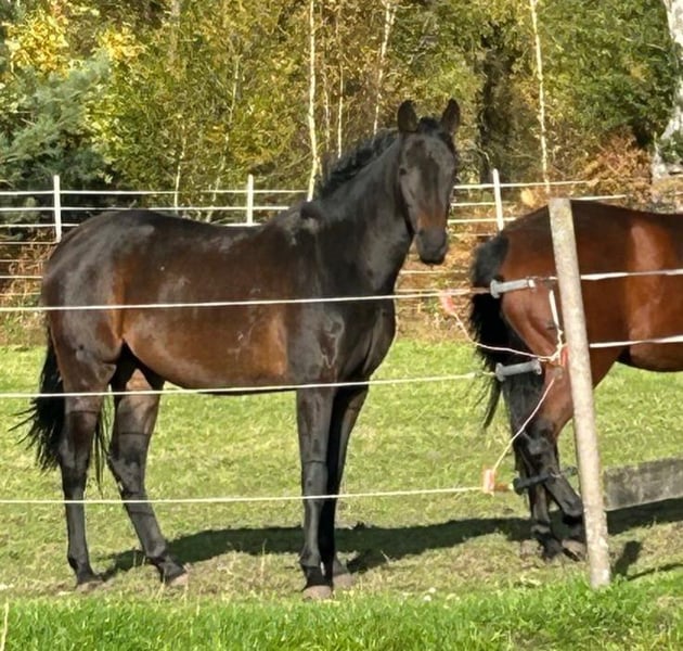 2-year-old mare, born June 2023, by BE MY DANCER (Benicio / Belissimo M / Vivaldi / Krack C / Ferragamo) out of PRINZENADEL by Peking-Landadel-Figaro. Sired by PLACIDO (Pik Bube - Graphit) and TIN ROCCO x FURIOSO II. The foal knows the ABC of horse handling. Great character, affectionate, and raised appropriately for her age. Currently approximately 1.59 meters. She will surely become a wonderful horse for the whole family. We can imagine her excelling in all disciplines of riding. 6.5🥕🥕 Postal code 46514 No video available. Please contact only via WhatsApp at 0172-7037909 to arrange a viewing. Serious inquiries only.