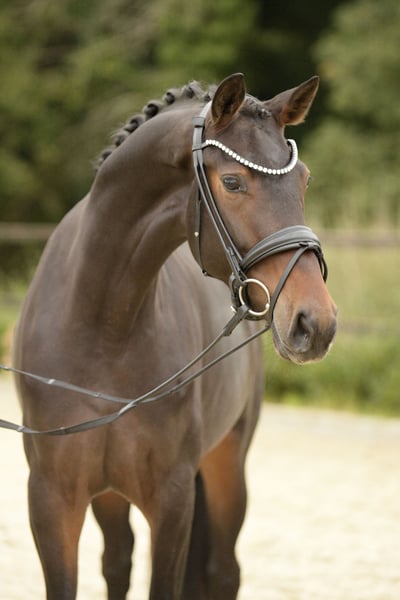 Beautiful 3-year-old mare by Glamourdale. She has only recently been under saddle and is developing steadily each day. Equipped with three very good GGA (gaits, rideability, and conformation), she is an excellent prospect for an ambitious dressage trainer. For more information, please contact me via phone or WhatsApp at +49 1512 9052971.