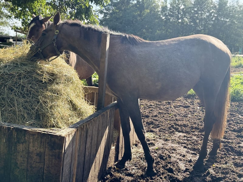Schöne, rahmige Schimmelstute von Marius Claudius ( Concorde x Nimmerdor) aus einer 1.30 platzierten Corrado Mutter ( Mutter entspringt dem Holsteiner Stamm 104a, Familie d Corrasini) Derzeit ca 1.65 stm wird aber noch deutlich wachsen Die Stute ist seit Fohlen bei uns, täglich an der Hand, super verträglich, gesund und korrekt im Fundament und auf den Hufen und ist bereit langsam in die Arbeit zu gehen Geimpft und regelmäßig entwurmt Keine Besonderheiten Keine Händler und keine letzte Preis Anfragen