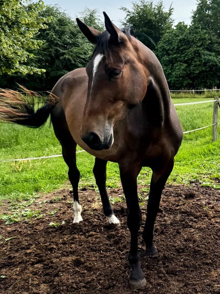Oferujemy tutaj klacz po Forlee - Cornet Obolensky - Lenardo. Jest jeszcze całkowicie nieoswojona i cieszy się młodością na łące, ale jest ufna i prowadzi się na kantarze. Jej matka dopiero zaczyna swoją karierę, ale w tym sezonie rozwinęła się od swojego pierwszego startu w skokach L do pierwszego startu na poziomie 1,35 m, a do tej pory wygrała do 1,20 m. Przyrodni brat matki odnosił sukcesy do S**. Babcia również odnosiła sukcesy w klasie ciężkiej i pochodzi bezpośrednio od pełnej siostry Phantom. Z linii pochodzą liczne udane konie sportowe, a także ogiery zarejestrowane i ogiery premiowane.