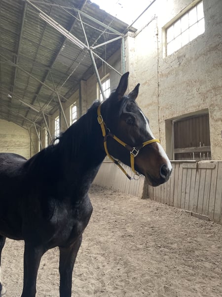 V: Vision VV: Vitalis MV: Benetton Dream De laatgeboren merrie "Vom Feinsten" (roepnaam "Mareike"), geboren in juni 2023, is een ware ruwe diamant. Ze overtuigt met grote, duidelijke gangen, veel schwung en expressie. Ideaal voor zelfopgeleide ruiters met ambitie in de dressuursport. Momenteel groeit Mareike op in een merrie groep met gemengd leeftijdsbereik (1-25+ jaar) en toont zich daarbij zeer makkelijk in de omgang. Meer informatie: - halster- en longeerbaar - staat rustig voor het poetsen en de hoefsmid - gaat braaf aan de hand het terrein in - eerste ervaring met longeerwerk aanwezig - regelmatig voorgesteld aan de hoefsmid (barhuf) - ontwormd - gevaccineerd (griep, tetanus, herpes) - herfst 2025 eerste keer gebitscontrole (wolfstanden niet meer aanwezig)