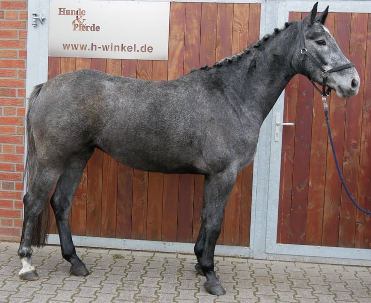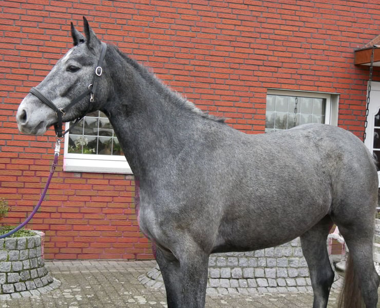 Talented and beautiful mare by Cornet Obolensky out of a Cartier v.d. Heffinck mother. She shows great reflexes and ability when free jumping. A veterinary check with X-rays is available. We currently have 6 more offspring by Cornet Obolensky (all from 2022). You are welcome to come and see the horses daily from 8 AM to 6 PM. Phone and WhatsApp: 0176 62495567.