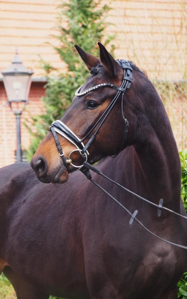 Here we present a 4-year-old daughter of Majestic, equipped with three very good gaits and a wonderful character. She has been raised on our farm and was gently backed at the age of three. Throughout, she has always shown her best qualities, both in handling and under saddle. She provides her rider with a fantastic riding experience, as she reacts to the finest aids and is absolutely light in the contact. She always wants to do everything right and impresses in daily work with her kind and uncomplicated nature. She is the ideal partner for an ambitious young horse rider who knows how to support her delicate character. A promising young dressage horse is developing here! Please contact us exclusively by phone if you are interested; we are happy to answer any questions! Additionally, we have other excellent dressage horses available that may suit you. Lars Schulze Wierling: 0049 171 4338810
