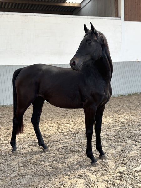 This extremely stylish 3-year-old Warmblood mare combines modern sport horse blood with an expressive appearance. Through her sire Total McLaren, she brings valuable dressage genes, while her dam by Pino Grigio also demonstrates convincing abilities in jumping – an exciting horse for both disciplines. The mare impresses with three outstanding basic gaits, good balance, and an elegant conformation. She is currently still green but has already been gently introduced to daily handling: ✔ Knows the lungeing system ✔ Loads easily and travels well in a trailer ✔ Shows talent in free jumping ✔ Good for the farrier and easy to handle With her charming presence, abundant mane and forelock, she is an absolute eye-catcher – both for the ambitious competition rider and for trainers looking for a young horse with quality and potential. If you are seriously interested, we look forward to your message!