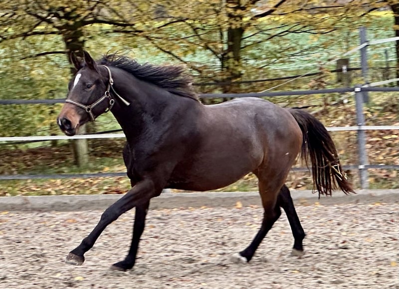 Eine 3-jährige mit viel Bewegung und einem stabilen Fundament. Sie hat das gewisse "Go", das es braucht. Sie ist roh und läuft noch im Laufstall. Sprünge hat sie bisher noch keine gemacht, da sie gerade von der Weide kommt und ein Dressurpferd dabei hat. Angaben zum Mutterstamm: Die zweite Mutter ist die Vollschwester zum Olympiadritten von London 2012, Blue Lloyd. Eine weitere von uns gezogene 8 jährige Stute aus diesem Stamm geht bereits CSI**.