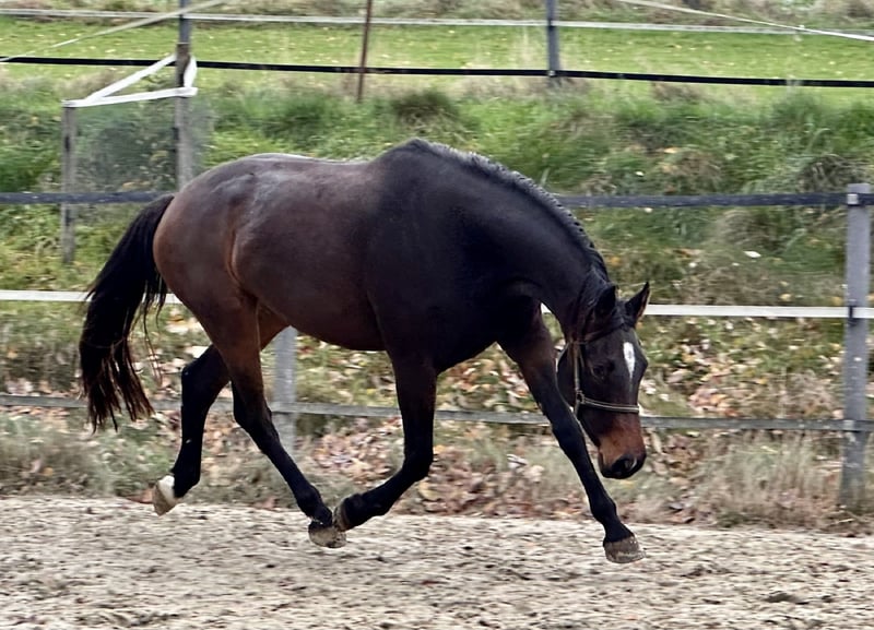 A 3-year-old mare with plenty of energy and a solid foundation. She has the necessary "go" to succeed. She is still quite green and currently in the paddock. She has not yet jumped, as she has just come in from the pasture and is being ridden by a dressage horse. Details about her dam line: The second dam is the full sister of Blue Lloyd, who placed third at the London 2012 Olympics. Additionally, another mare from this lineage, an 8-year-old, is already competing at CSI** level.