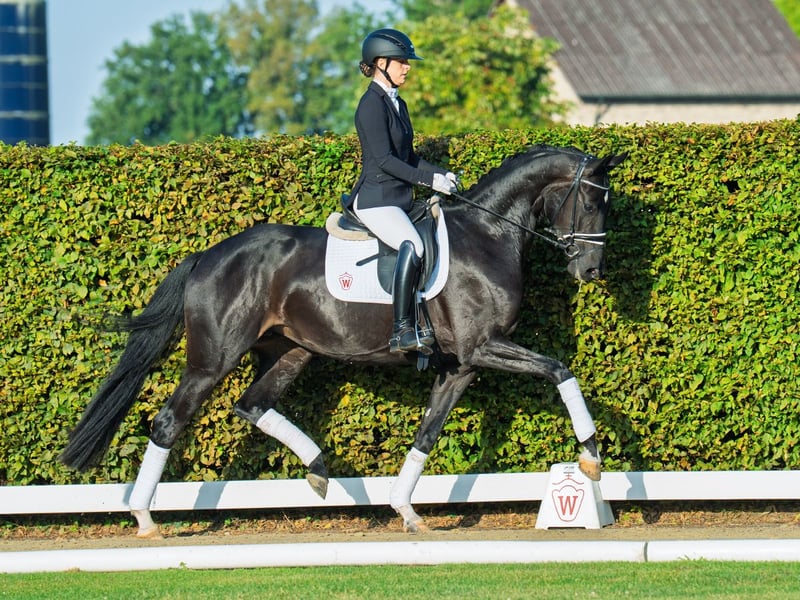 Met deze expressieve dochter van For Romance I betreedt een heel bijzonder paard de veilingvloer in Münster-Handorf. Beweeglijkheid en rijdbaarheid laten bij For Hope geen wensen onvervuld! Fokresultaten: StPr ZSP: 8.48 1e Generatie Veilingpaarden: Glitzerbiene v. Glamourdale (veulen van de Westf. Lente-Auktie '24/35.000 €) 2e Generatie Bijzondere premie-dochters: StPr Fiadora v. Fürst Wilhelm (reservewinnares Westf. Elitekeuring '20) 3e Generatie Gekeurde hengsten: Fontaine TN v. Finest Sportpaarden: Sky-Man v. Surprice (DR Kort Grand Prix succesvol) Veilingpaarden: Ganz großes Kino v. Galaxy (5e Westf. Online Veulen-Auktie '20/30.000 €) Merriestam Gekeurde hengsten: o.a. Dream Maker v. Damsey, Lividon GPF v. Livaldon, Chaloc v. Casaretto, Columbus Z v. Cornet Obolensky, Space Shuttle v. Surprice Sportpaarden: o.a. Raptor 3 v. Rubin-Royal (DRE int. PSG/Inter I succesvol/Karen Böckmann), Sador 2 v. Samarant (DRE M succesvol), L'Emporio v. Lacantus (SPR int. 1,50 m succesvol), Hollywood 48 v. Herzensdieb (DRE int. Grand Prix succesvol/Helen Langehanenberg), Honeymoon 106 v. Herzensdieb (DRE M succesvol), Carpalo v. Contender (SPR int. 1,60 m succesvol/o.a. Steve Guerdat (ZWI)), Westminster v. Coriolan (SPR int. 1,60 m succesvol), Armani v. Acord II (SPR int. 1,60 m succesvol), Azuro v. Acord II (SPR int. 1,50 m succesvol), Enette v. Espri (SPR 1,50 m succesvol) Moeder: StPr Fiadora ZL: 5/3 ZSP: 8.41