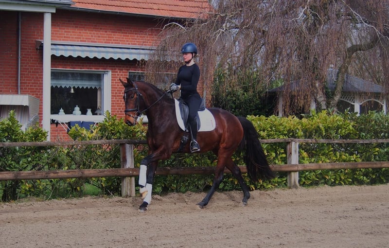 Diese 5 jährige Stute von Zoom x Sir Heinrich ist bei uns auf dem Hof geboren und aufgewachsen. Sie wurde schonend angeritten und nach einer wohlverdienten Weidepause erneut behutsam an den Sport herangeführt. Sie ist ausgestattet mit drei sehr guten GGA und befindet sich erst am Anfang ihrer Ausbildung. Sie zeigt sich aber schon jetzt sehr positiv in der täglichen Arbeit und vermittelt dem Reiter stets ein sicheres Reitgefühl. Nicht nur unter dem Sattel, sondern auch im Umgang ist sie stets unkompliziert und menschenbezogen. Eine Partnerin für die Zukunft! Haben wir Ihr Interesse geweckt? Kontaktieren Sie uns bitte ausschließlich telefonisch, wir beantworten Ihre Fragen gerne. Außerdem haben wir zur Zeit weitere gute Dressurpferde, die für Sie interessant sein könnten! Lars Schulze Wierling: 01714338810 Bitte keine Nachrichten, diese werden nicht beantwortet!