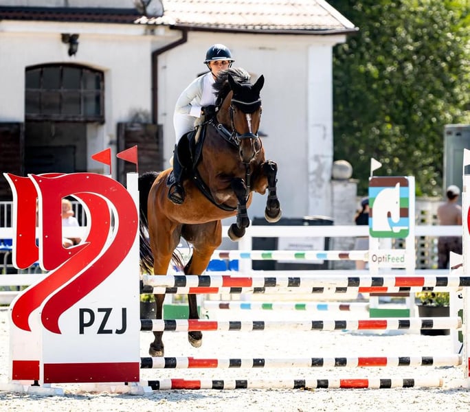 Nixon Comila – klacz, ur. 2021 r., po Nixon van’t Meulenhof z matki po Comme il Faut / Voltaire / Ramiro Z. Nixon Comila uzyskała wynik 14,53 podczas Mistrzostw Polski w skokach w Łącku 2025, notując dwa bezbłędne przejazdy. Klacz jest bardzo jezdna, odważna i grzeczna w obsłudze, dysponuje dużą mocą, doskonałą techniką i świetnym potencjałem skokowym. Wyniki Nixon Comily: https://livejumping.com/ap/search/all/nixon%20comila Jej ojciec, Nixon van’t Meulenhof, startuje z sukcesami w międzynarodowych konkursach skokowych do poziomu FEI 1,60 m. Jest półbratem słynnego Emerald van’t Ruytershof, ponieważ oba ogiery pochodzą od legendarnej matki Carthina Z (po Carthago x Lys de Darmen). Matka, Cometa (po Comme il Faut), aktualnie startuje z powodzeniem do poziomu 1,20 m. Babka, Venus, wydała kilka międzynarodowych koni sportowych, w tym: • Casillero – poziom międzynarodowy 1,50 m • Cornitu – poziom 1,45 m Ojciec tej wspaniałej klaczy przekazuje swoje wyjątkowe geny potomkom – zobacz, jak wielu jego potomków startuje w wysokich klasach! Potomstwo ojca – Nixon van’t Meulenhof: https://www.horsetelex.com/horses/progeny/1656408 HorseTelex: https://www.horsetelex.de/horses/pedigree/2643487/nixon-comila Bardzo dobry TÜV – grudzień 2024 Lokalizacja: Prohipo Stables, Polska Bezpośrednio od hodowcy. Więcej informacji: +48 503 055 508