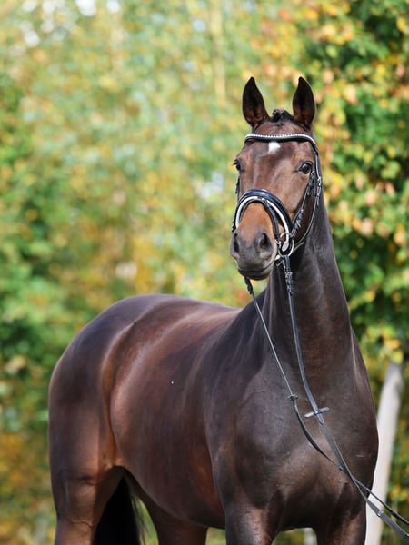 High-quality dressage prospect from the breeder Fergie is a horse with a lot of charisma, bringing everything one expects from a top dressage prospect. Her excellent basic gaits are combined with size, courage, and willingness to perform. This makes her the ideal sports partner for ambitious riders looking for a horse with which they can achieve everything. Our trainer puts it succinctly: "Fergie is a horse that I need. There is movement behind it, there is willingness to perform. The horse is engaged; she wants to work." And after we photographed Fergie, we must add that she has true model qualities - we have never had so many different, great photos with such an outstandingly cooperative horse. Fergie combines excellent performance genes: She is sired by the For Romance I son Fashion in Black NRW. He was the Westphalian champion stallion, reserve champion of his HLP, vice champion of the 4-year-old stallions at the Bundeschampionat, and already successful in S-level competitions at the age of 7. Her dam's sire is Ingrid Klimke's Grand Prix series winner Franziskus FRH, whose father and grandfather were also Grand Prix horses. On her dam's side, Fergie has four generations of premium and state premium mares. Her mother is a full sister to the S-successful Flo Renciano and has 6 other successful siblings. The second dam is, among others, a full sister to the S-horse Showstar, and the fourth dam is a full sister to two S-horses. Good X-rays available. You can find us just 30 minutes from Berlin, where we have raised Fergie from foal age in our agricultural operation on large pastures in a herd setting. If you would like to get to know Fergie and our other young horses or learn more, we look forward to your call at 03301 577 2585! *** The journey is worth it! For more young horses, see below in our other listings. ***