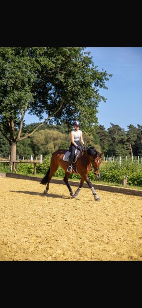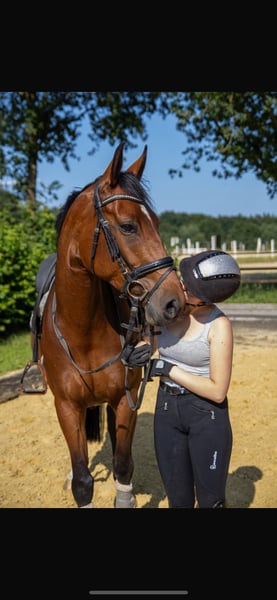 Yegua de Diamant First de madre Mon Cher. Dalida es un encantador caballo de ocio de 6 años, sin uso previo, para el jinete de ocio ambicioso. Es muy sociable y tiene un carácter maravilloso. Conoce el trabajo con barras, así como montar en la pista cubierta y en los espacios exteriores. Dalida va en grupo y también sola al campo, y es completamente valiente en ello. Es compatible con otros caballos y se carga sin problemas. Nuestra yegua es autónoma y solo se vende en las mejores manos.